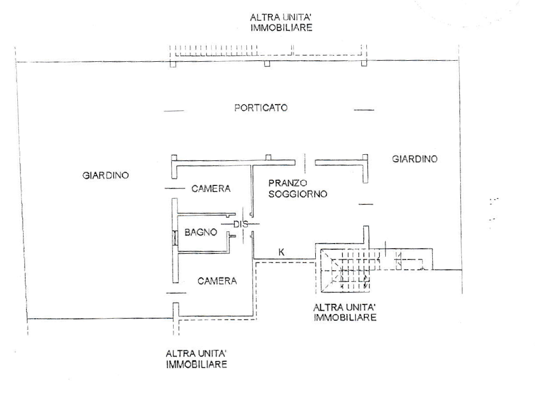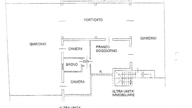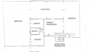 L’abitazione è composta da soggiorno con angolo cottura di circa 30 metri con un’ampia vetrata scorrevole che fornisce luminosità all’ambiente, disimpegno, camera da letto matrimoniale con accesso al giardino, seconda camera di quasi 11 metri e bagno con doccia finestrato, esternamente da giardino privato e spazioso porticato di 57 metri.