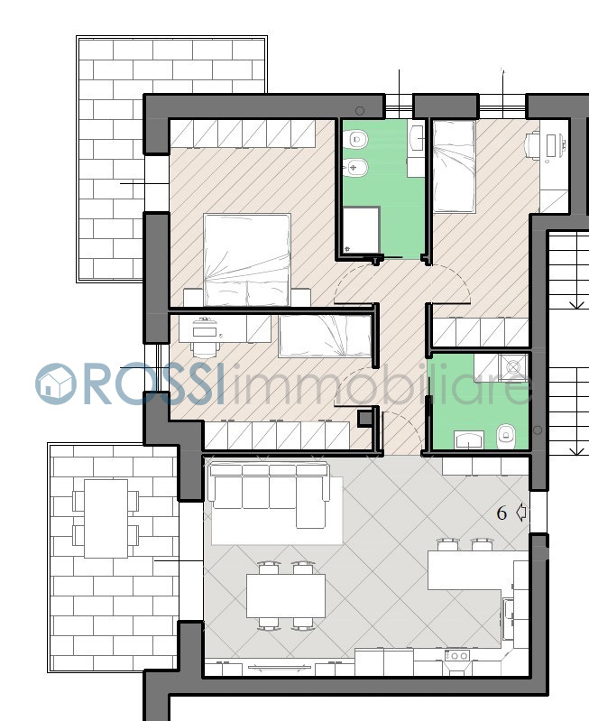 L’unità immobiliare proposta in vendita è sita al piano primo ed è composta da un comodo soggiorno con angolo cottura di oltre 30 MQ con terrazzo, disimpegno, una camera da letto matrimoniale con balcone, due camere da letto doppie, un bagno finestrato con doccia e un secondo bagno/lavanderia.