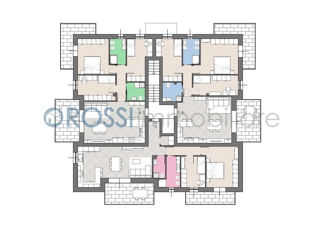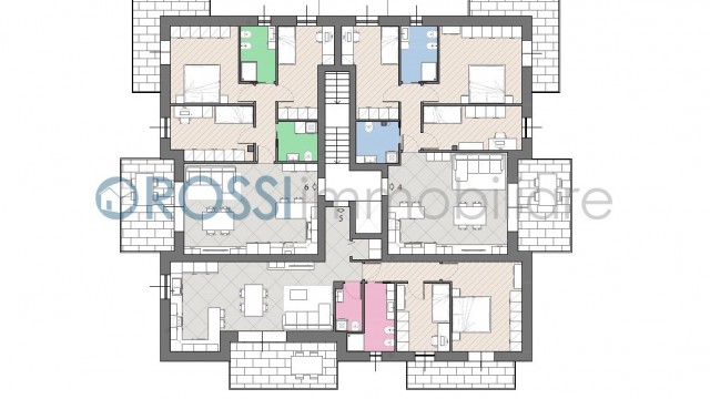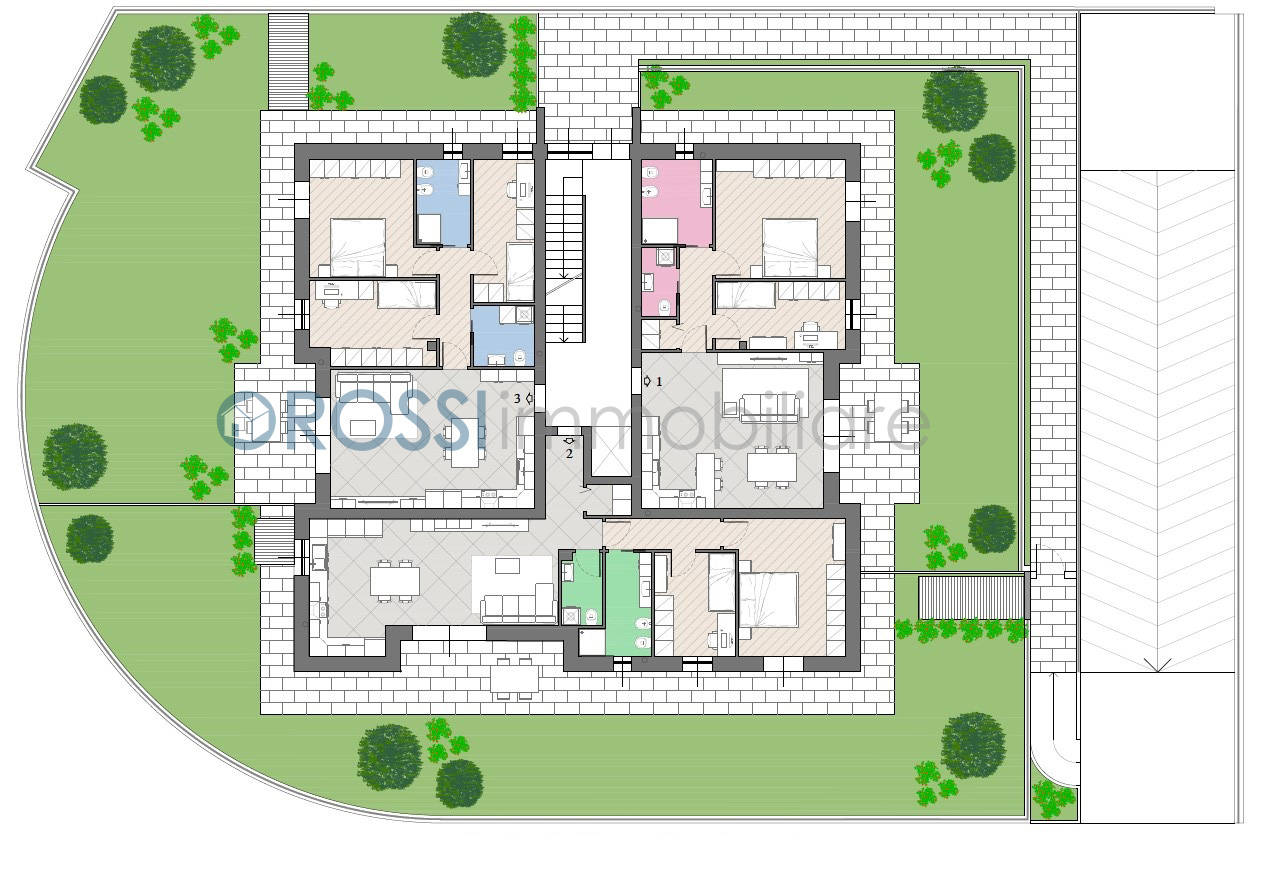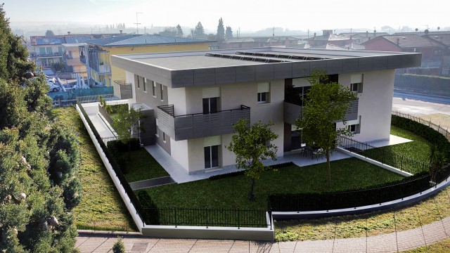 La struttura sarà composta da 6 appartamenti, 3 al piano terra con giardino e 3 al primo piano con terrazzo, oltre a box e cantine al piano interrato.